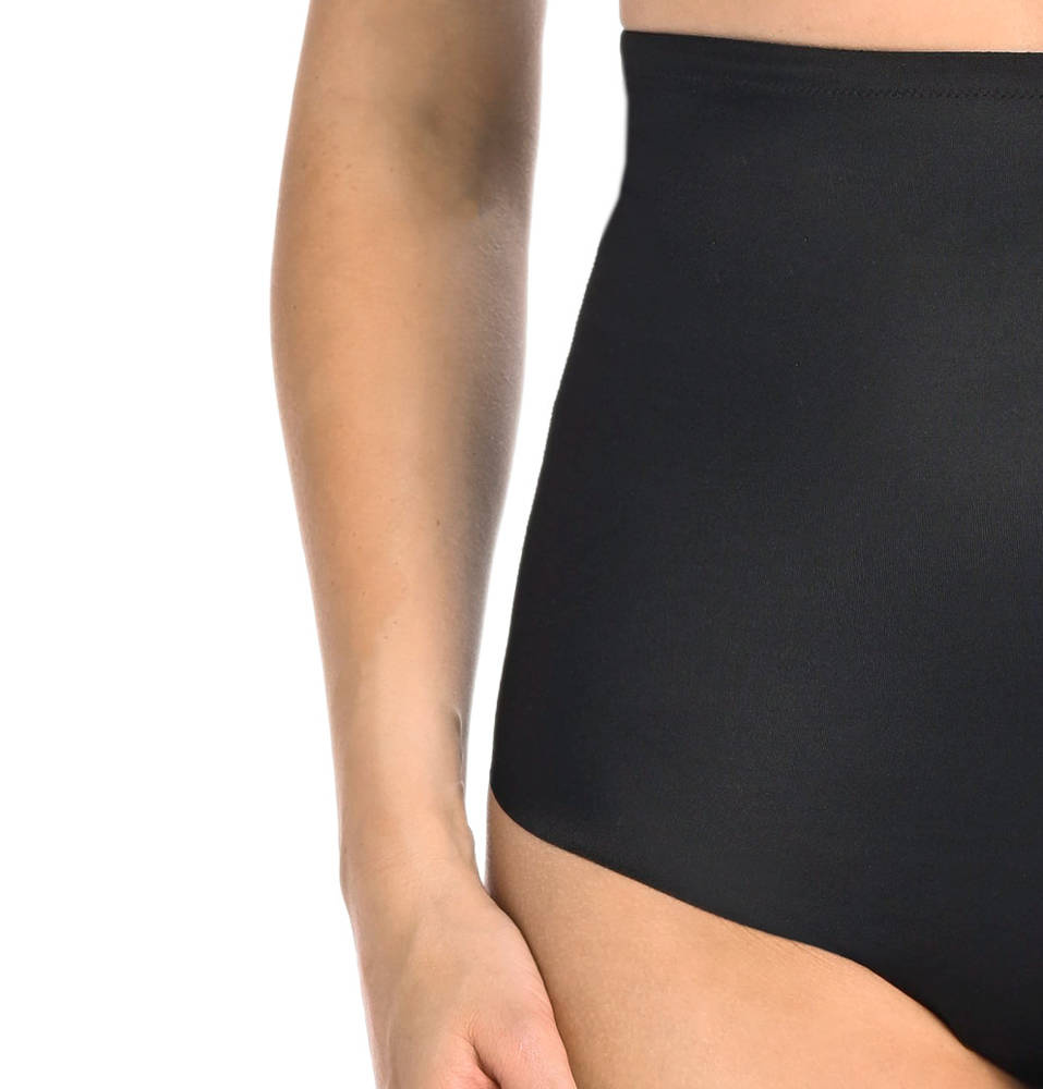 Modelujące majtki damskie z wysokim stanem pod biust wykonane z wysokiej jakości elastycznego materiału, które z uwagi na swój skład idealnie modeluje sylwetkę. Maskuje wystający brzuszek i odstające boczki. Z tyłu majtki korygujące są mocniej zabudowane i kryją pośladki. Majtki z wysokim stanem są bezszwowe i niewidoczne spod dopasowanej sukienki. W kroku od wewnętrznej strony majtki wykończone są delikatną przewiewną bawełną absorbującą wilgoć. Sprawdzą się na co dzień do pracy i na szczególne okazje.