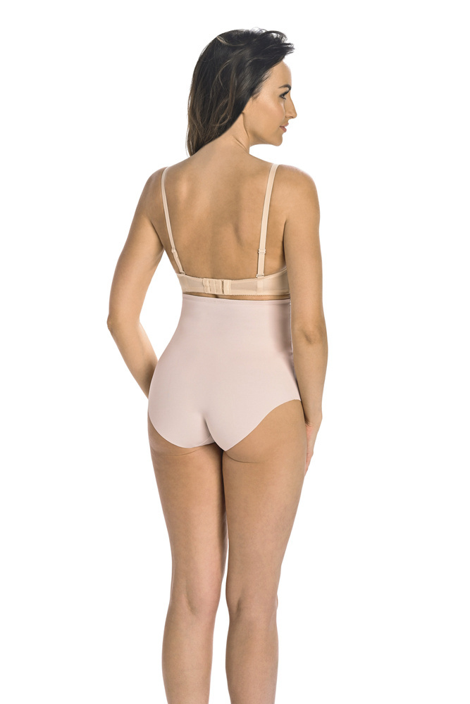 Modelujące majtki damskie z wysokim stanem pod biust wykonane z wysokiej jakości elastycznego materiału, które z uwagi na swój skład idealnie modeluje sylwetkę. Maskuje wystający brzuszek i odstające boczki. Z tyłu majtki korygujące są mocniej zabudowane i kryją pośladki. Majtki z wysokim stanem są bezszwowe i niewidoczne spod dopasowanej sukienki. W kroku od wewnętrznej strony majtki wykończone są delikatną przewiewną bawełną absorbującą wilgoć. Sprawdzą się na co dzień do pracy i na szczególne okazje.