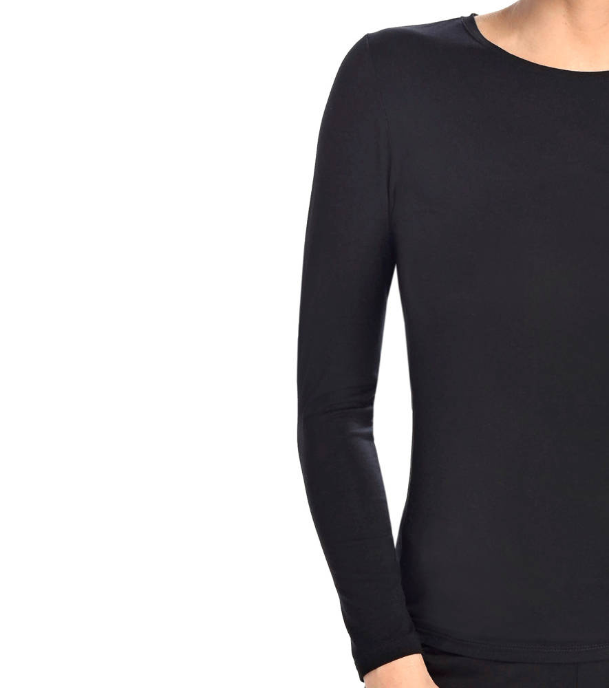 Damska koszulka mocno dopasowana do sylwetki z długim rękawem. Wykonana jest z wysokiej jakości delikatnego dla kobiecej skóry przewiewnego włókna bambusa, który ma właściwości antybakteryjne i jest wskazany dla kobiet z alergią. Dodatkowo zawiera w swoim składzie niewielką ilość elastycznego włókna lycry, dzięki temu idealnie przylega do sylwetki, podkreślając jej zalety. Koszulka damska długością sięga do połowy bioder, fantastycznie komponuje się z dopasowanymi jeansami i legginsami. Bambusowy podkoszulek to konieczny must have każdej współczesnej kobiety kochającej klasykę i ceniących sobie wygodę.