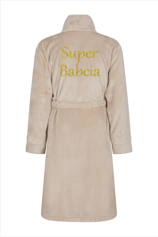 Super Babcia Szlafrok damski polarowy ByShelly - beżowy/złoty