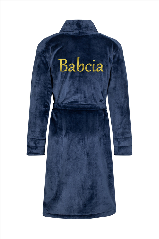 Babcia Szlafrok damski polarowy ByShelly - granatowy/złoty