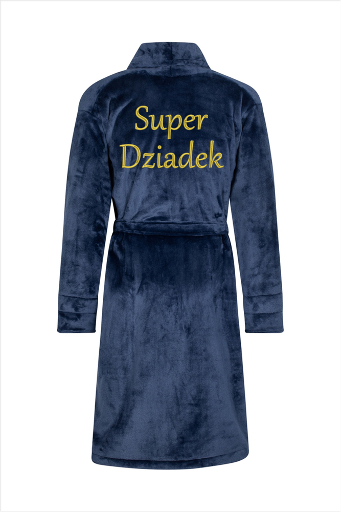 Super Dziadek Szlafrok męski polarowy ByShelly - granatowy/złoty