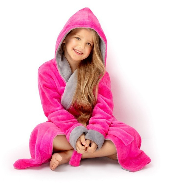 Dziecięcy szlafrok z kapturem wykonany z mięciutkiej dzianiny.