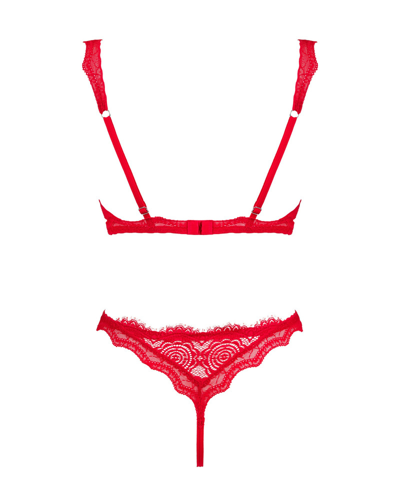 W komplecie biustonosz z otwartymi miseczkami i stringi z otwartym krokiem