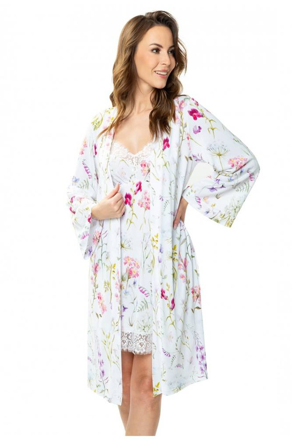 86538 Flores Szlafrok peniuar Mewa druk w kwiaty