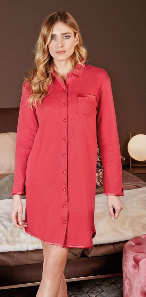 Koszula nocna z długimi rękawami. Kieszonka na wysokości piersi. Wykonana z delikatnego materiału.