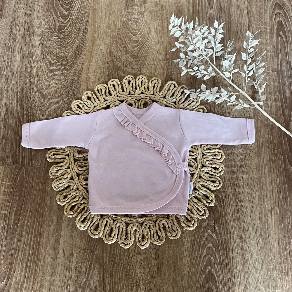 Delikatna koszulka niemowlęca wykonana ze 100% bawełny. Wykończona miękką lamówką.