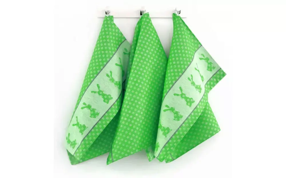 Komplet ścierek kuchennych 3szt zapakowane w pudełko. Zestaw o tym samym motywie wzorniczym i spójnej kolorystyce. Ścierka to produkt utkany techniką żakardu z przędzy bawełnianej, klasycznej, o doskonałej chłonności. Wyjątkowa wodochłonność. Bardzo dobra trwałość. Komplet kuchenny, to doskonały pomysł na prezent lub mały upominek na każdą okazję.