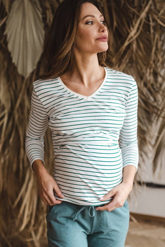 Milk Shirt bluzka ciążowa i do karmienia Milk&Love w zielono-białe paski