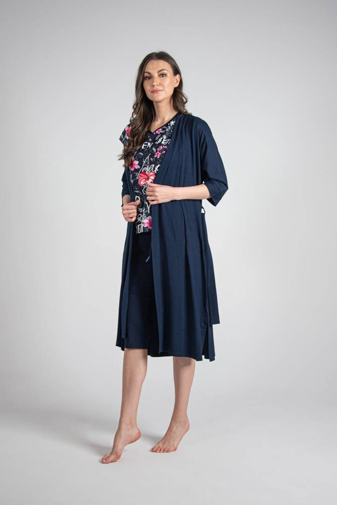 Dwuczęściowa piżamka firmy De lafense wykonana z wysokogatunkowej wiskozy. Idealna na dobry sen i na wspaniały początek dnia przy pierwszej porannej kawie. Koszulka z krótkim rękawem, wzorzysta. Spodnie jednolite, typu 3/4.