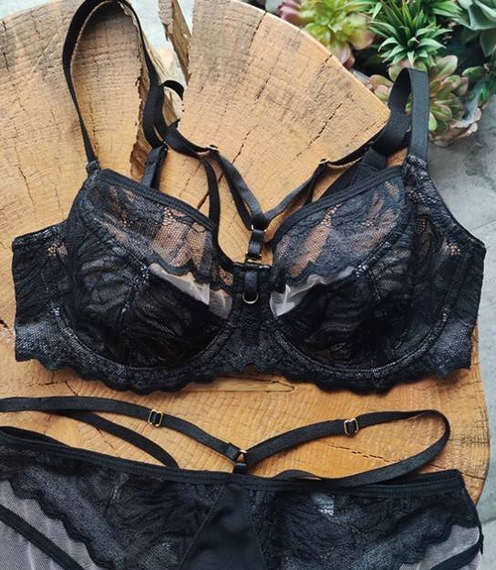 Miseczki wykonane z beżowej siatki pokrytej czarną delikatną koronką. Konstrukcja odpowiednia dla Pań z dużym i średnim biustem, zastosowane cięcia i materiały zapewniają doskonałe podtrzymanie biustu. W dekolcie ozdobny pasek, którego zakończenie imituje dodatkowe ramiączka na plecach. Pasek jest odpinany.