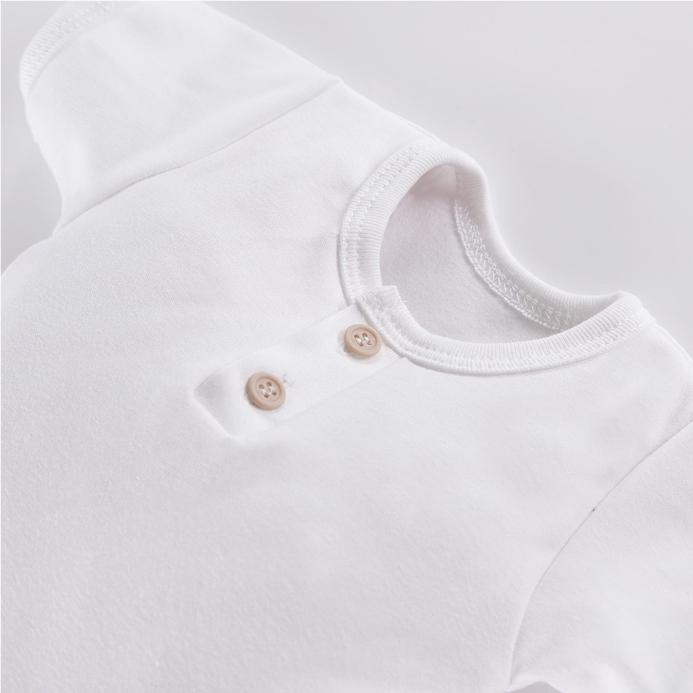 Białe body polo z krótkim rękawem. Body dziecięce sprawdzą się idealne do 3 roku życia. Mamy najczęściej wybierają body dla swoich maluszków. Jest to must have każdej wyprawki niemowlęcej czy przedszkolnej.