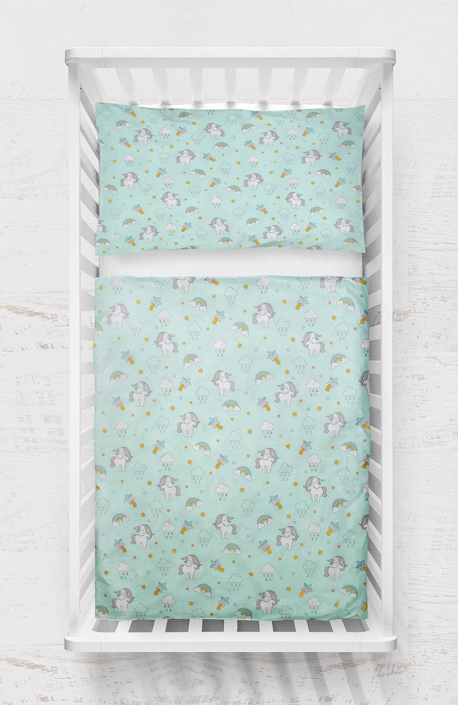 "Jednorożce " Pościel dziecięca dwu częściowa Happy Bear Martex miętowy