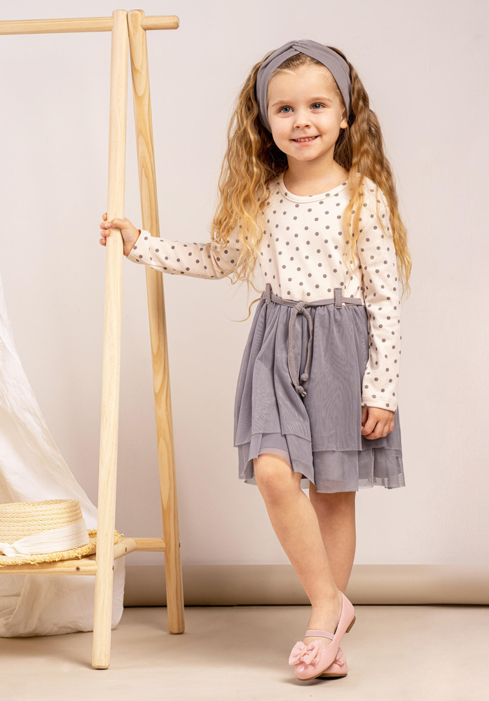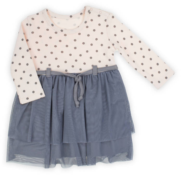 Dziewczęca sukienka w kolorze łososiowym. Ozdobiona nadrukiem. Luźny fason nie krępuje ruchów. Sukienka zapinana jest na ramionach, co znacznie ułatwia ubieranie i rozbieranie maluszka. Zatrzaski wykonano z antyalergicznego, bezpiecznego tworzywa bez dodatku niklu. Doskonałym uzupełnieniem dla sukienki będzie kamizelka oraz opaska z kolekcji Sara.