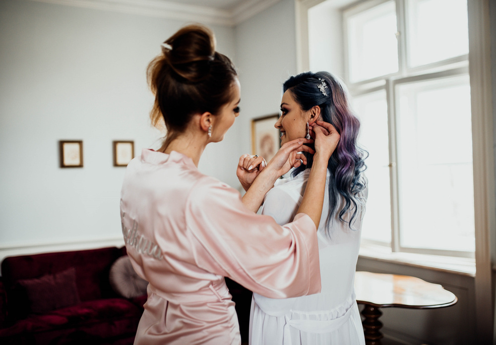 Świadkowa Szlafrok damski satynowy ByShelly - różowy/srebrny