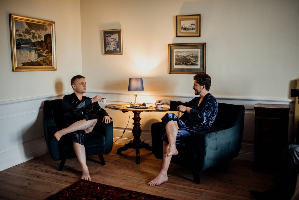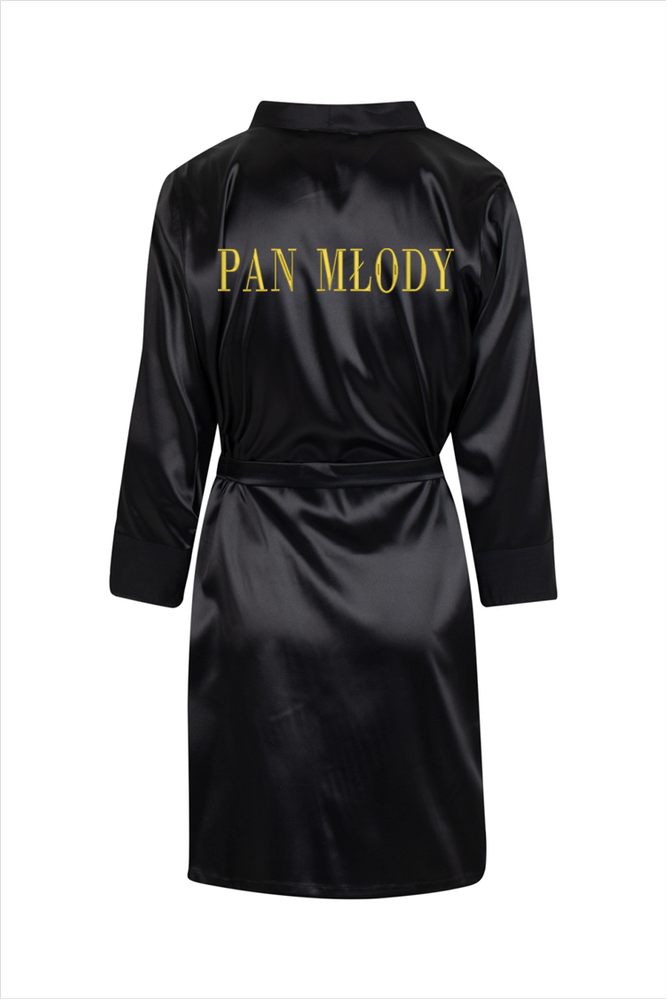Pan Młody Szlafrok męski satynowy ByShelly - czarny/złoty