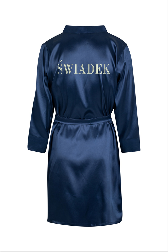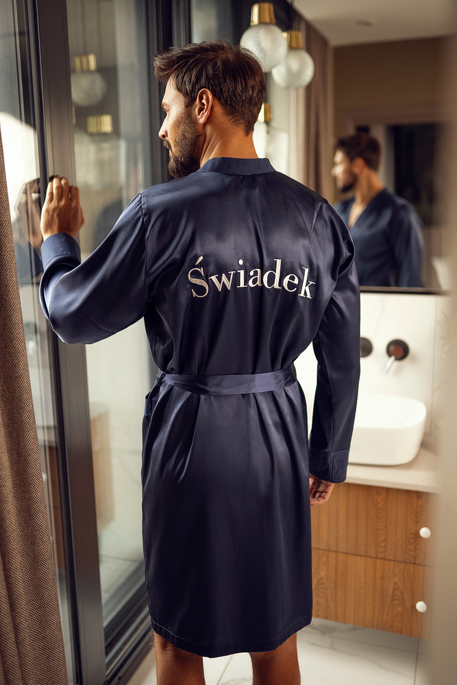 Świadek Szlafrok męski satynowy ByShelly - granatowy/srebrny