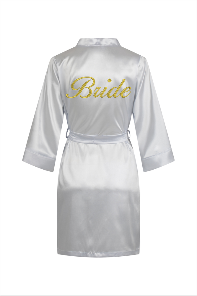 Bride Szlafrok damski satynowy ByShelly - bialy/złoty