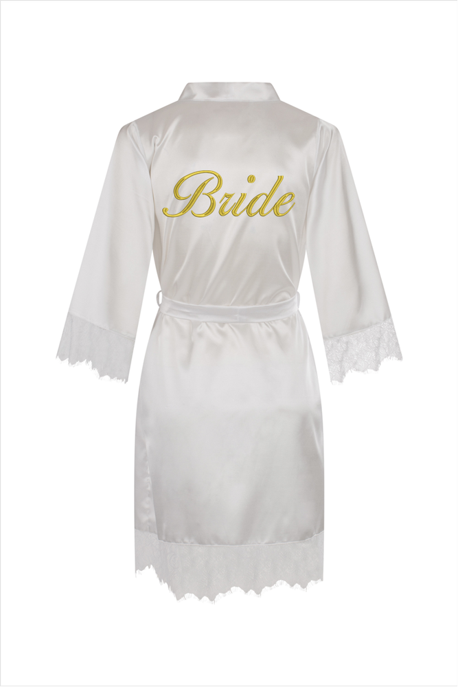 Bride z koronką Szlafrok damski satynowy ByShelly - bialy/złoty