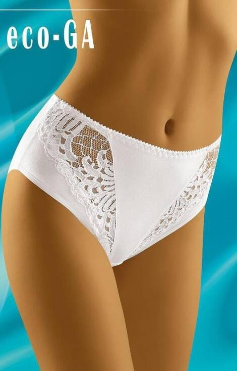 Figi pełne damskie zabudowane z wysokiej jakości bawełny ekologicznej z dodatkiem lycry. Z przodu ozdobne koronkowe wstawki. Tył gładki.