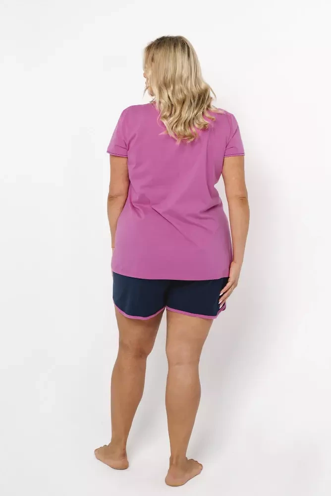 Ontega Piżama Damska krótki rękaw, spodenki Italian Fashion- amarantowy/granatowy