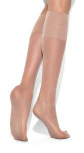 Podkolanówki Relax z funkcją masażu. Dzięki specjalnemu sposobowi tkania stóp mają właściwości masujące spodnią część stopy, poprawiając jej ukrwienie. Góra wykończona jest szeroką gumką, która nie powoduje ucisku, nie pozostawia nieestetycznych odgnieceń na ciele.