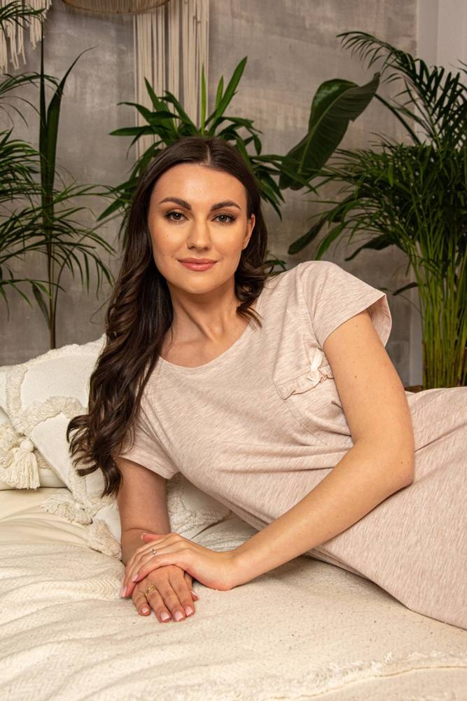 Koszula damska z wysokiej jakości, miłej w dotyku bawełny. Koszulka z krótkim rękawem. Dekolt półokrągły. Długość przed kolano. Bardzo wygodny fason, delikatnie dopasowany do ciała. Spodoba się kobietom, które uwielbiają delikatność i swobodę.