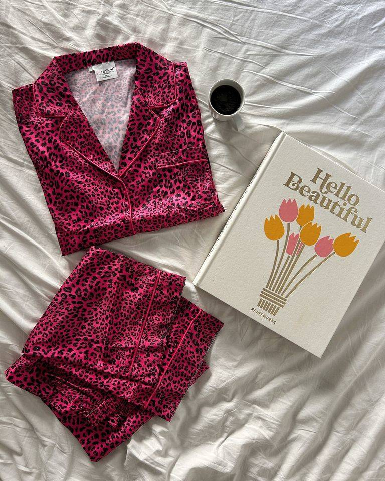 Piżama damska z delikatnej tkaniny satynowej. Koszulka z długim rękawem, rozpinana. Na wysokości piersi ozdobna kieszonka.