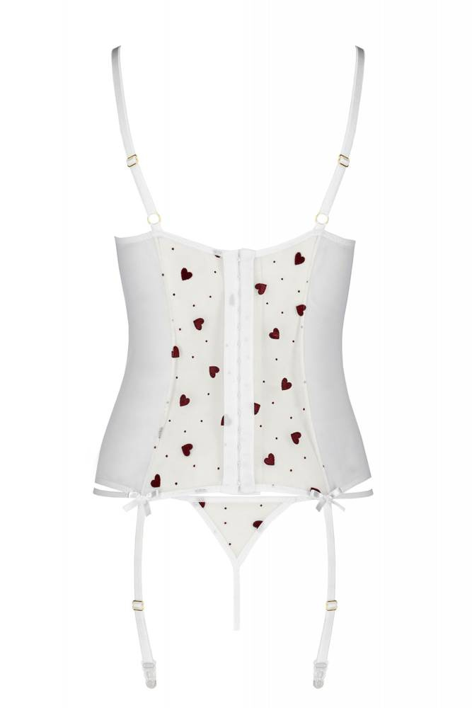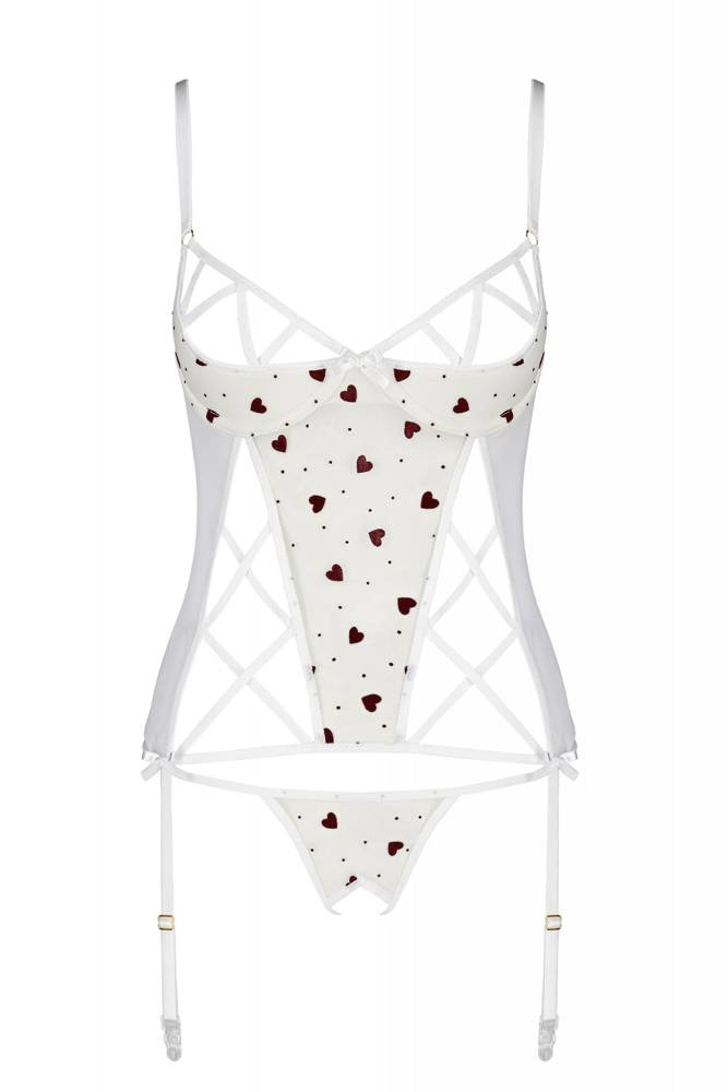 Romantyczne zdobienia oraz kuszące wycięcia to przepis który sprawi, że partner oszaleje na Twoim punkcie! Bielizna dostępna w kolorze czerni i beli, które są klasyką wśród damskiej bielizny - przydadzą się na wiele okazji! W komplecie stringi.