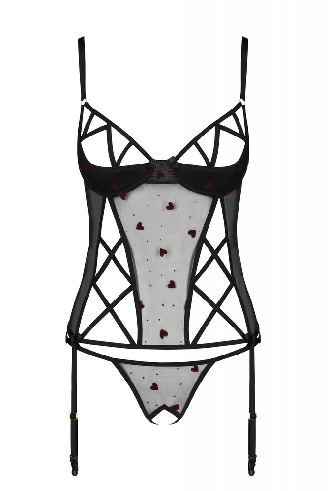 Romantyczne zdobienia oraz kuszące wycięcia to przepis który sprawi, że partner oszaleje na Twoim punkcie! Bielizna dostępna w kolorze czerni i beli, które są klasyką wśród damskiej bielizny - przydadzą się na wiele okazji! W komplecie stringi.
