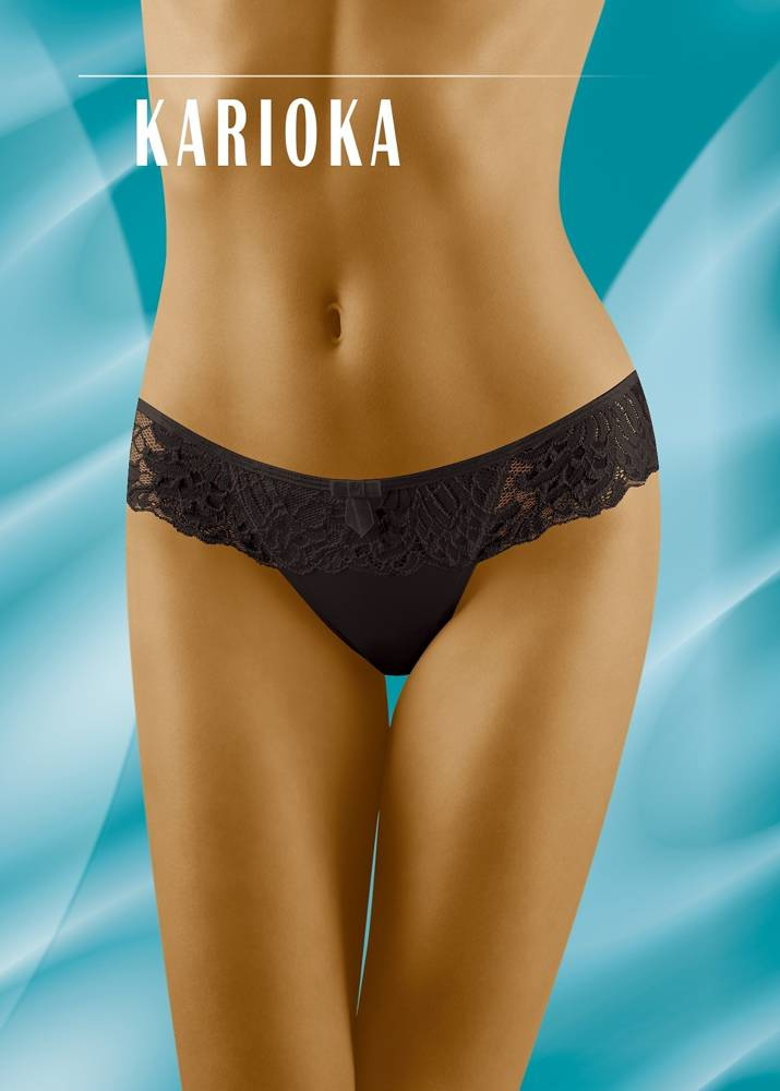Eleganckie stringi damskie wykonane miękkiej mikrofibry oraz efektownej koronki