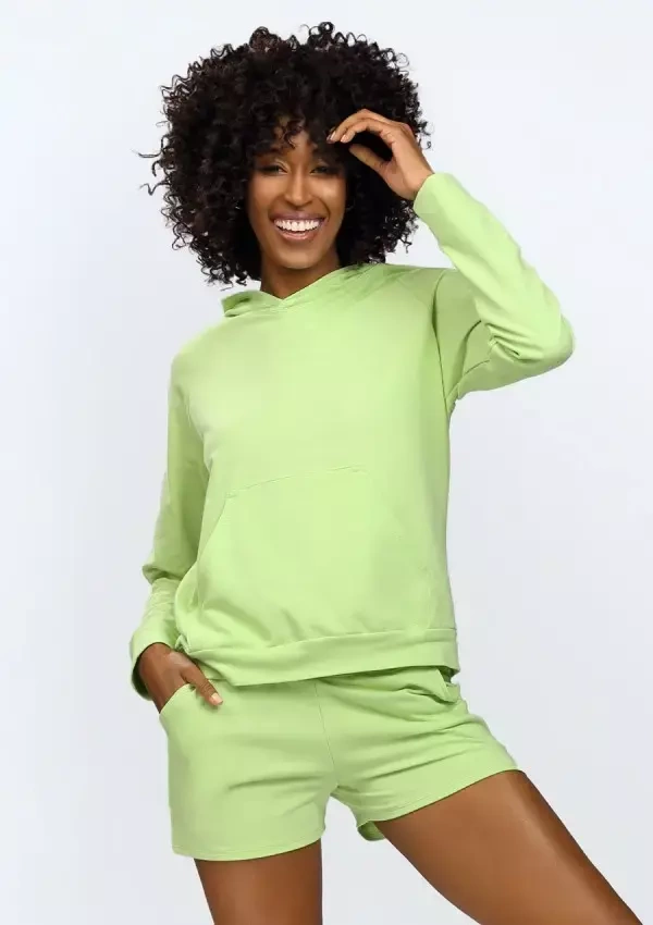 Bardzo komfortowy komplet dresowy. Bluza z kapturem, nie posiada zamka, ma dużą kieszeń. Krótkie spodenki na gumce wykonane z gładkiego, przyjemnego materiału. Posiadają dwie kieszenie na przodzie spodni. Idealny zestaw na luźniejszą stylizacje! Więc niezależnie od tego, czy idziesz na siłownię, czy po prostu odpoczywasz w domu, nasze dresy są idealnym wyborem do każdej aktywności.