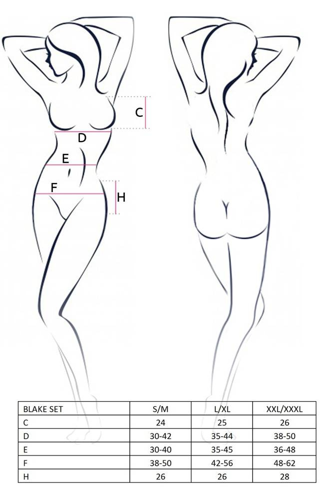 Trzyczęściowy komplet wykonany z czarnej mikrofibry i elastycznego tiulu. Zapięcia do pończoch posiadają regulacje co jest gwarancją dopasowania. Stringi w komplecie.