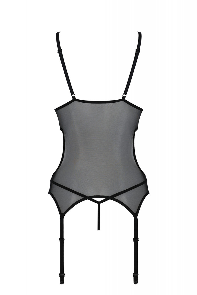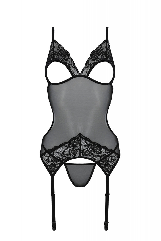 Uwodzicielski gorset idealnie modelujący talię i biust. Niezwykle romantyczne koronkowe wstawki oraz delikatny tiul. Idealne zestawienie, które rozpali twoje zmysły.
