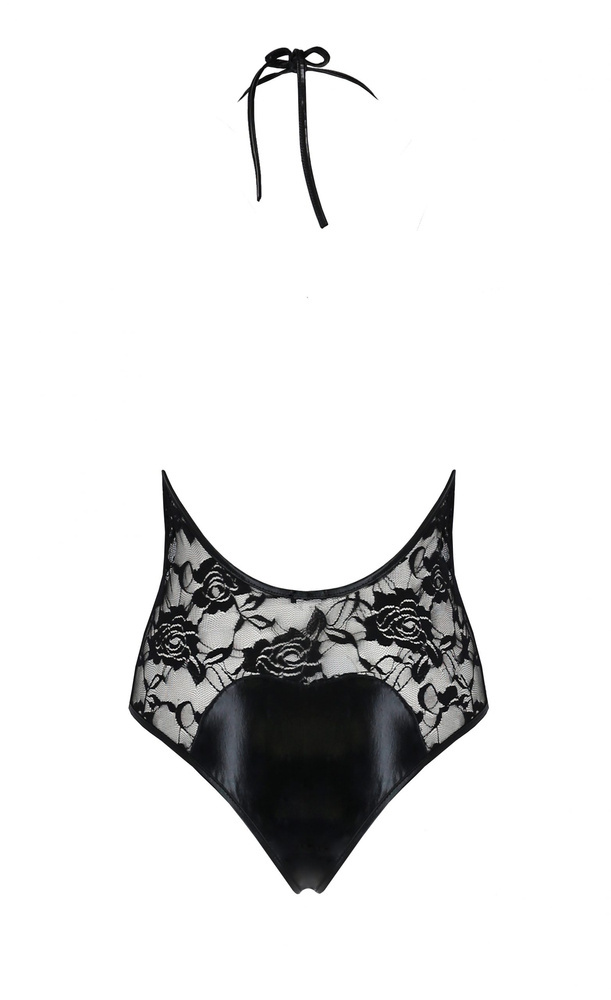 Wyjątkowe body wykonane z eleganckiego plenu oraz czarnej lamy. Komplet zapinany na haftkę.