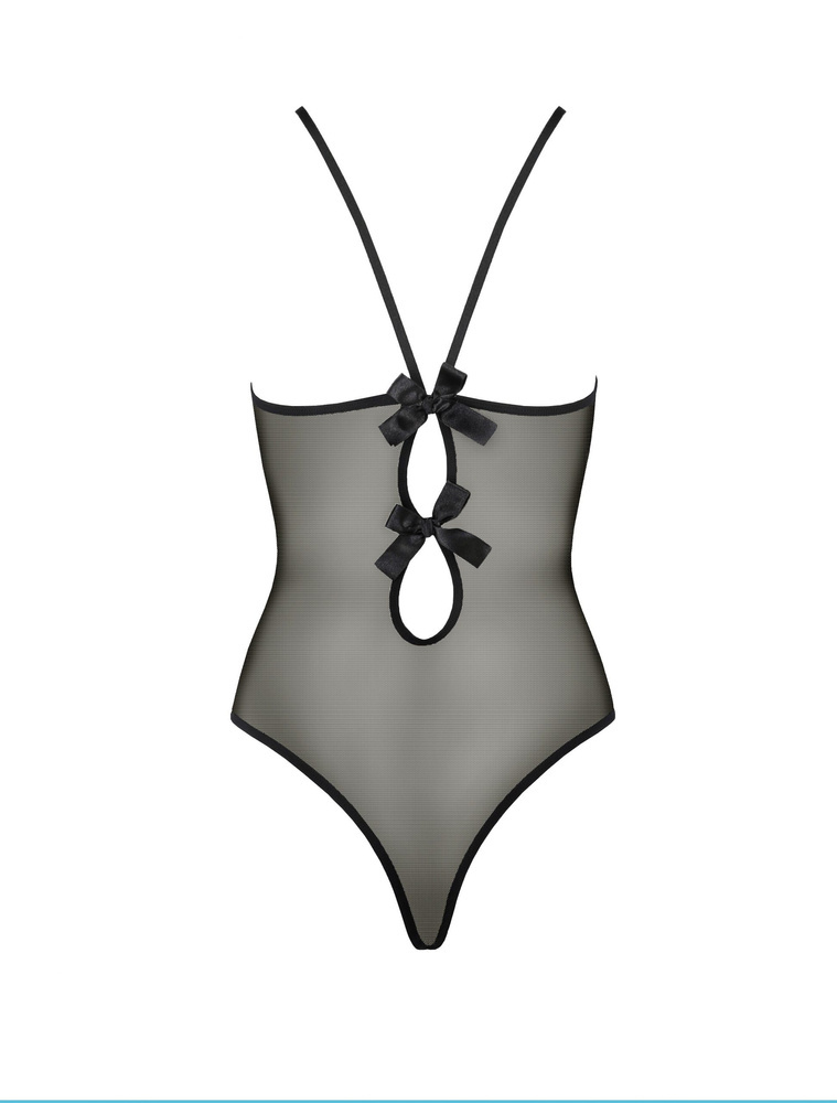 Na doskonałość body Melania składa się najwyżej jakości, niesamowicie seksowny tiulowy materiał, subtelne koronkowe zdobienia oraz paseczki zmysłowo opinające się na biuście oraz biodrach. Elementem stanowiącym uroczy dodatek do całości są kokardki, które zdobią tylną część body. Czy można przejść obok niego obojętnie? Na pewno nie!