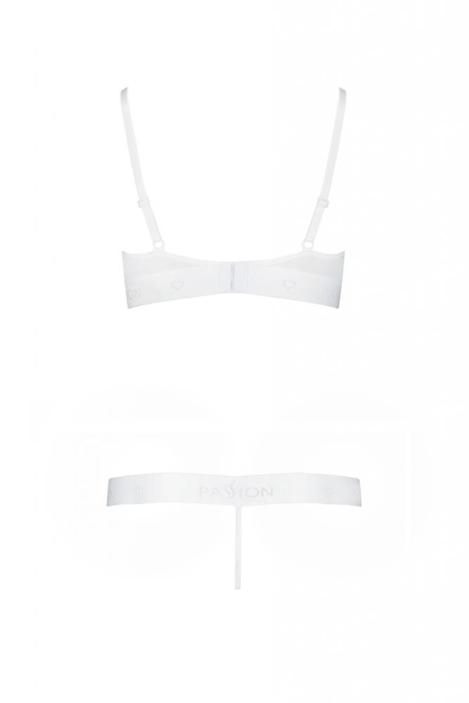 Nietypowy biustonosz typu open bra. Przeznaczony jest dla kobiet lubiących odważną, nietypową bieliznę. Doskonale uwydatnia piersi, a ponętne paski okalające ciało dodają pikanterii do całości. W skład kompletu wchodzi biustonosz typu 'open bra' oraz mocno wycięte stringi