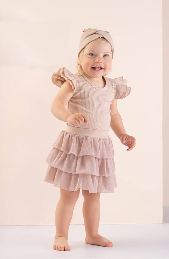 Mięciutka opaska uszyta z bawełny. Dobrze utrzymuje się na główce dziecka. Jest to efektowna ozdoba dziecięcej główki, która doskonale komponuje się z pozostałymi ubrankami z kolekcji Bunia