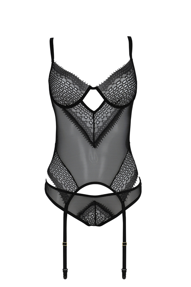 Gorset, który zachwyca zestawieniem kolorów, czy materiałów. Tiul zdobiony wstawkami ponętnej koronki prezentuje się niezwykle seksownie.