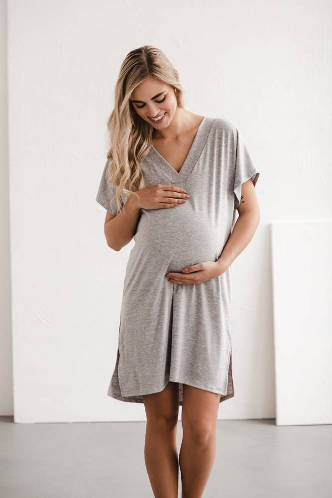 Opinie o Moon wiskozowa koszula nocna ciążowa i do karmienia Milk&Love jasny szary melanż