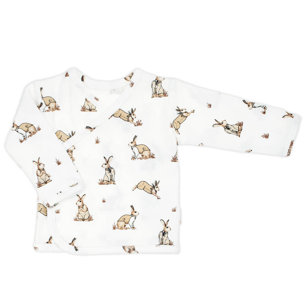 Delikatna koszulka niemowlęca wykonana ze 100% bawełny. Pod szyją wykończona miękką lamówką, zapinany na bezniklowe napy.