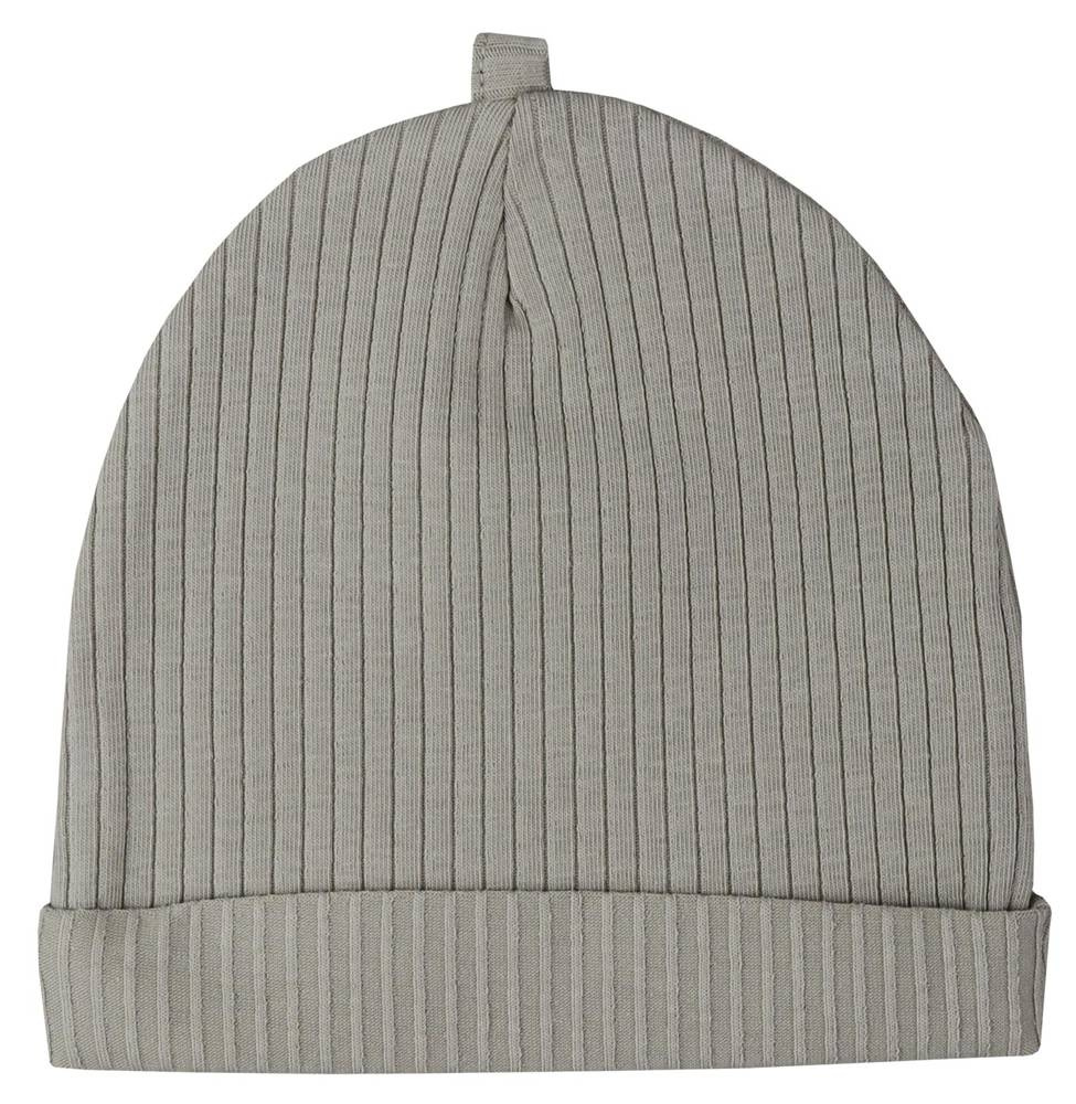 Czapka niemowlęca wykonana z bawełny. Wykonana jest z dzianiny prążkowanej.