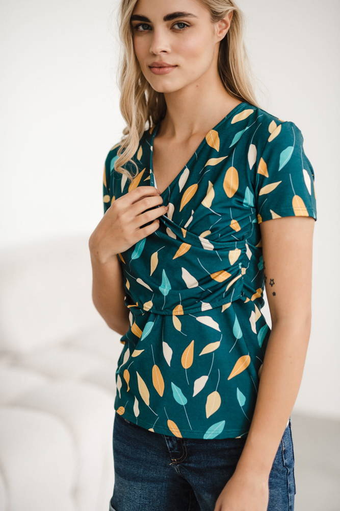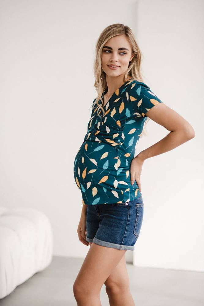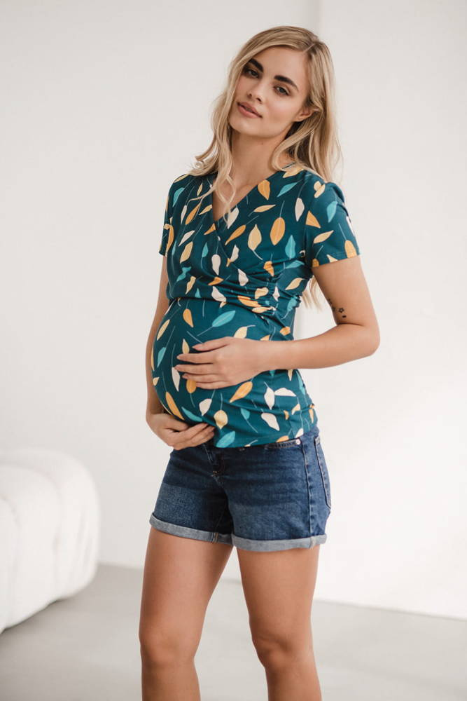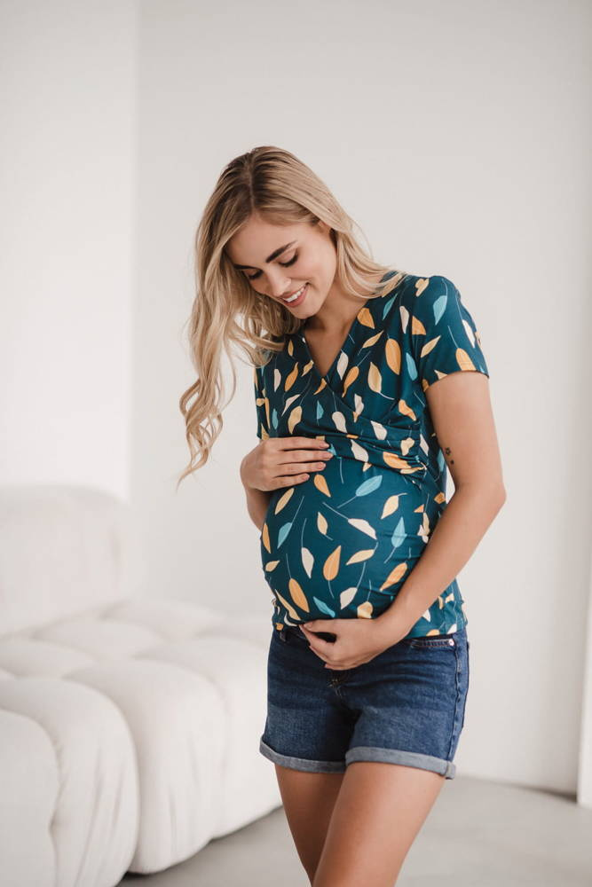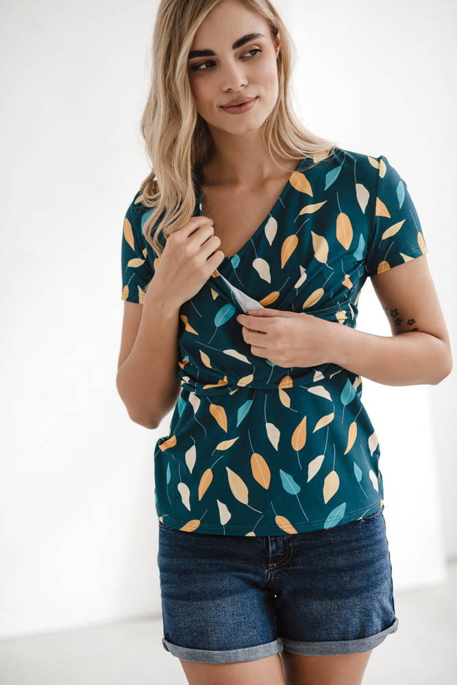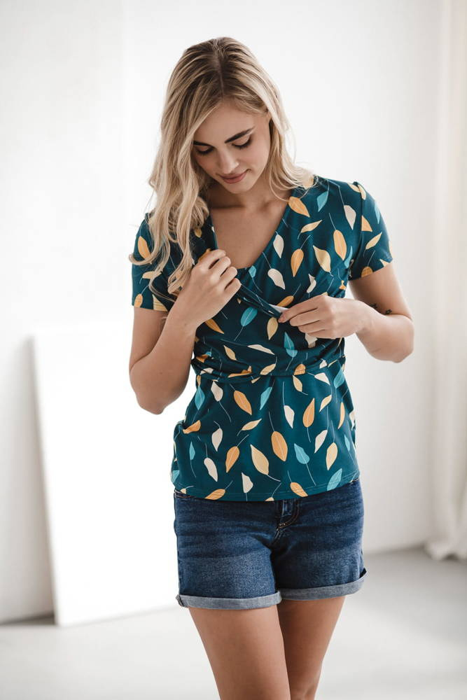 Milk Bar Bluzka do karmienia i ciążowa Milk&Love turkusowy w listki