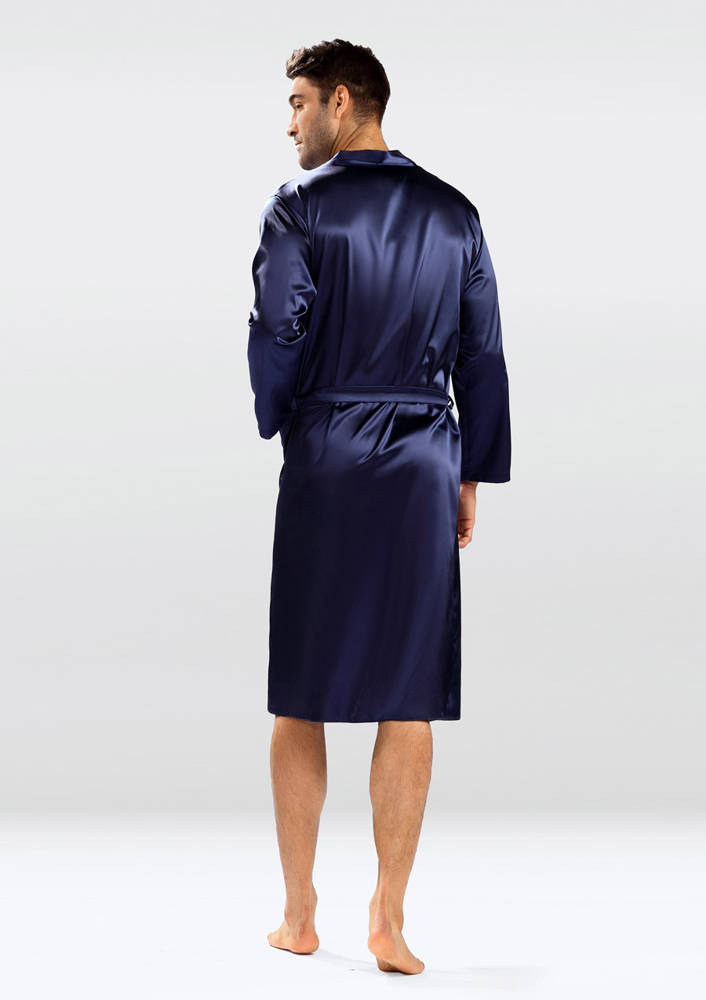 Christian Szlafrok męski satynowy Dkaren - granatowy