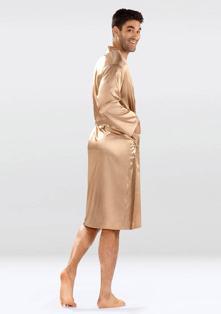 Christian Szlafrok męski satynowy Dkaren - jasny brąz