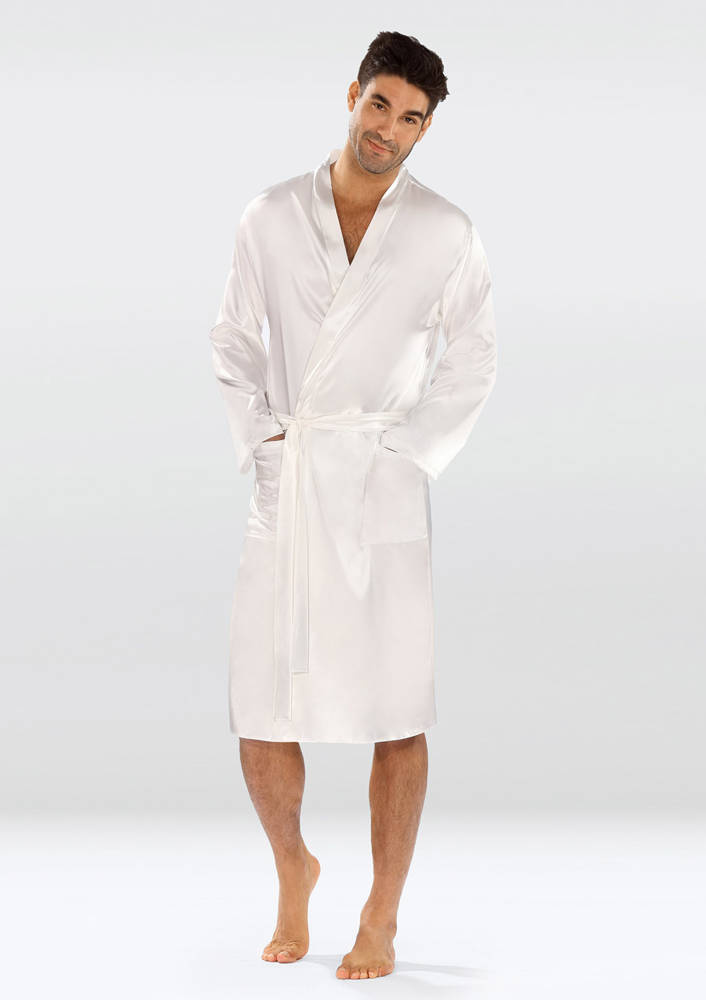 Christian Szlafrok męski satynowy Dkaren - jasny ecru