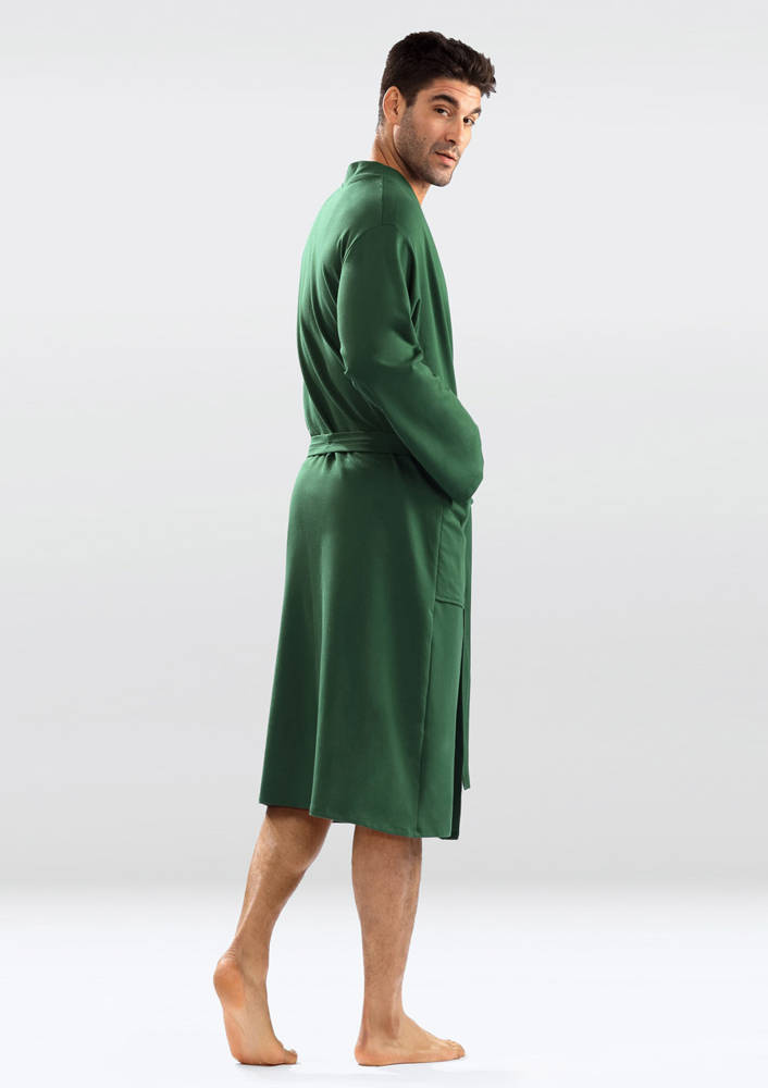 Długi i przyjemny w dotyku szlafrok wykonany z bawełny. Bawełniana tkanina natychmiast otuli Cię ciepłem i komfortem, czyniąc go idealnym wyborem na relaks lub odpoczynek. Szlafrok jest wiązany w pasie, posiada dwie kieszenie, które są idealne do przechowywania telefonu.