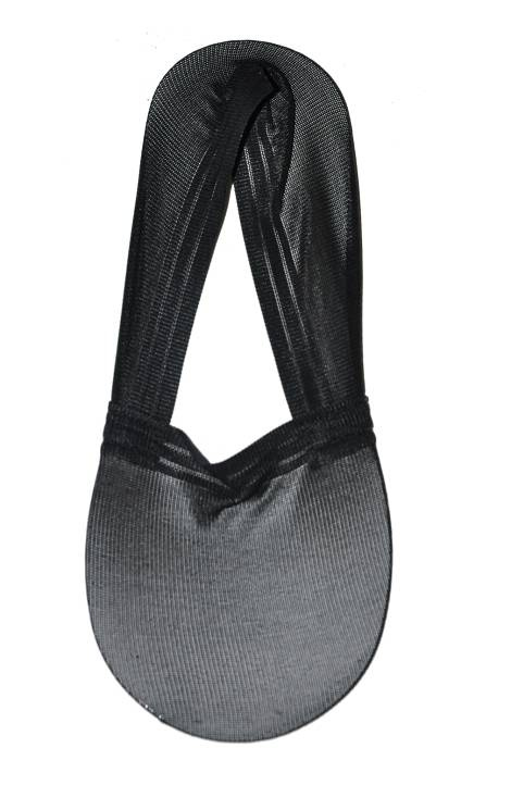 Cienki, prześwitujący materiał, ściągacz z potrójnym, elastycznym paskiem, zapobiega zsuwaniu.