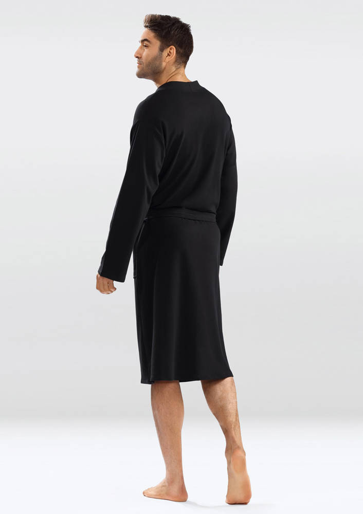 Długi i przyjemny w dotyku szlafrok wykonany z bawełny. Bawełniana tkanina natychmiast otuli Cię ciepłem i komfortem, czyniąc go idealnym wyborem na relaks lub odpoczynek. Szlafrok jest wiązany w pasie, posiada dwie kieszenie, które są idealne do przechowywania telefonu.