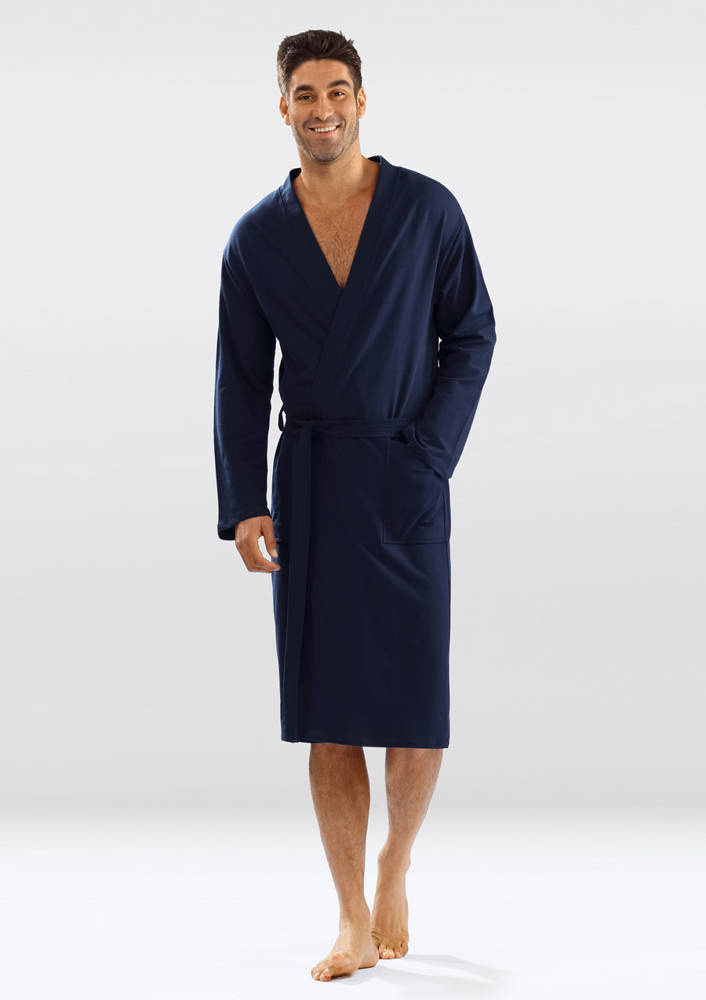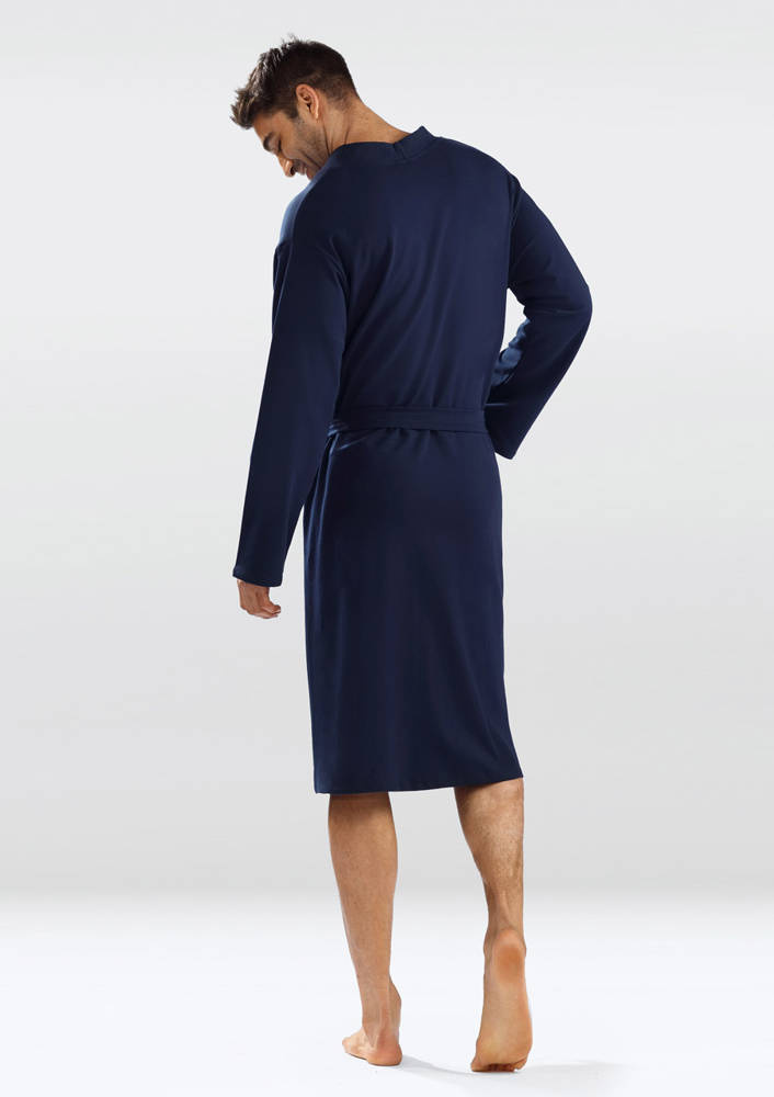 Długi i przyjemny w dotyku szlafrok wykonany z bawełny. Bawełniana tkanina natychmiast otuli Cię ciepłem i komfortem, czyniąc go idealnym wyborem na relaks lub odpoczynek. Szlafrok jest wiązany w pasie, posiada dwie kieszenie, które są idealne do przechowywania telefonu.